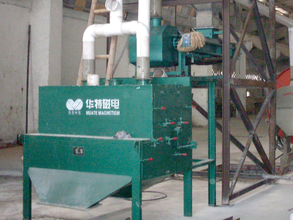 用于細顆粒或粗粉狀物料中清除弱磁性氧化物,廣泛應(yīng)用于化工、耐火材料、玻璃、陶瓷等非金屬礦的干式除鐵,赤鐵礦、褐鐵礦的干式預(yù)選以及錳礦的干法選礦
